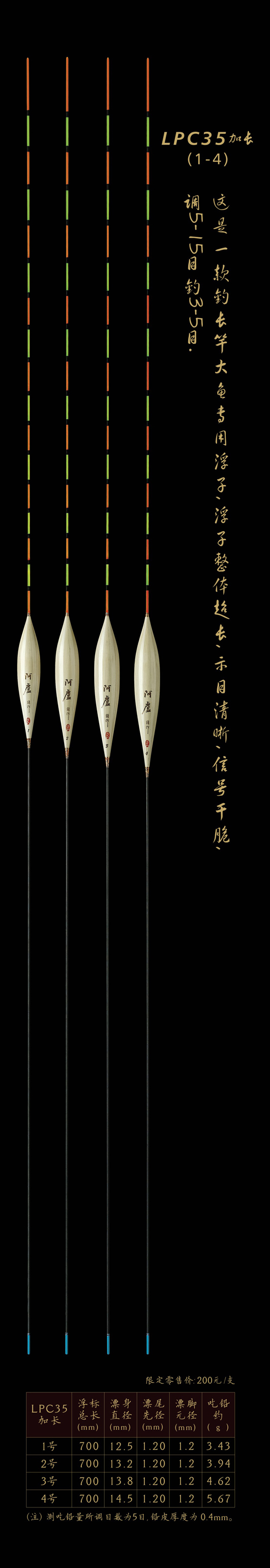 LPC35加長(zhǎng):釣長(zhǎng)竿大魚(yú)專用浮子,浮子整體超長(zhǎng),示目清晰,信號(hào)干脆,調(diào)5—15目釣3—5目。